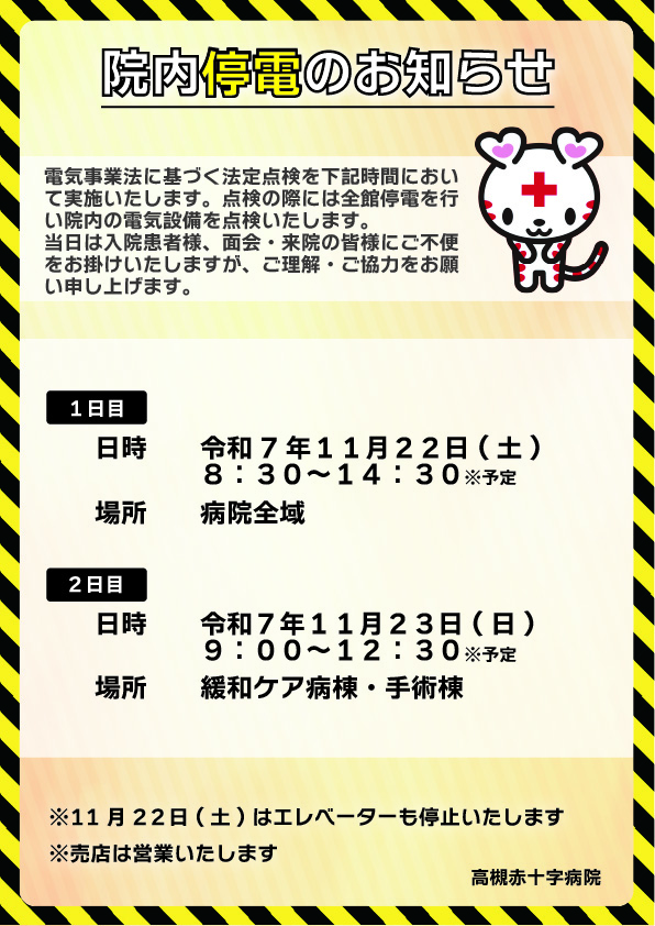 法定点検による院内停電のお知らせ(11月22日、11月23日)